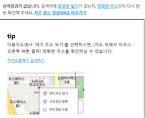 ○ 오류발생사유 : 현재 확인중이며, 주소찾기 시스템 연동 문제로 추측중입니다.